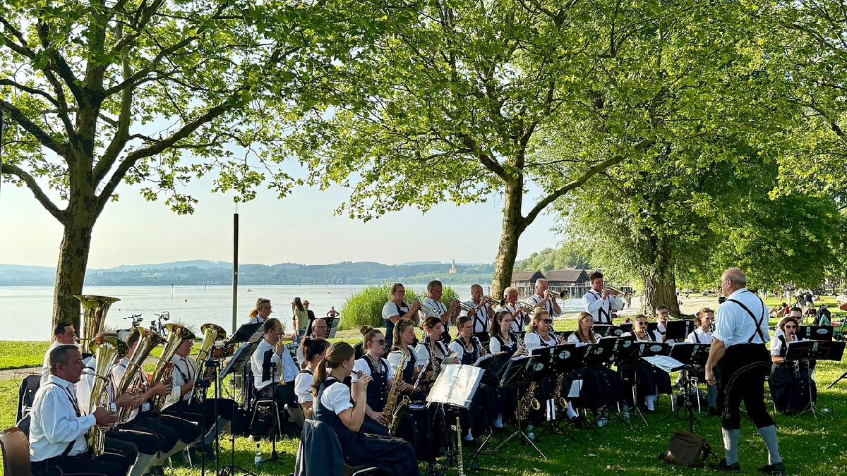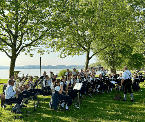 Über drei Wochen laden die Musikvereine aus der Seeferiengemeinde Uhldingen-Mühlhofen zum Mitschunkeln ein. Die geselligen Mittwochabende mit kräftiger Blasmusik finden unmittelbar an der Uferpromenade in Uhldingen-Mühlhofen statt. Gönnen Sie sich eine Auszeit und genießen Sie einen unvergesslichen Konzertabend mit dem Musikverein Oberuhldingen e. V. am Bodenseeufer. Freuen Sie sich auf Unterhaltungs- und Blasmusik, begleitet von romantischen Sonnenuntergängen und herrlicher Seekulisse am Naturstrand im Ortsteil Unteruhldingen. Freuen Sie sich auf musikalische Unterhaltung mit dem Musikverein Oberuhldingen e. V. Der Musikverein Oberuhldingen e. V. ist ein traditionsreicher Blasmusikverein aus Uhldingen-Mühlhofen, dessen Motto „Musik die Spaß und Stimmung bringt!“ den Geist des Vereins treffend beschreibt. Er wurde bereits 1900 gegründet und prägt seit über einem Jahrhundert das kulturelle und gesellschaftliche Leben der Gemeinde – sei es bei Konzerten, Festen oder kirchlichen und weltlichen Anlässen. Gut zu wissen: Die Konzerte finden nur bei guter Witterung statt. Bitte informieren Sie sich gegebenenfalls bei der Tourist-Information Uhldingen-Mühlhofen. Übrigens Unsere SeeferienKonzerte sind ausgezeichnet als Green Event BW – denn unsere Umwelt ist uns wichtig. Wir als Veranstalter achten daher auf die nachhaltige Durchführung unserer Veranstaltung wie z.B. die konsequente Müllvermeidung und Mülltrennung. Auch Sie können etwas für die Umwelt tun und z.B. mit den öffentlichen Verkehrsmitteln oder mit dem Rad zu den SeeferienKonzerten kommen.