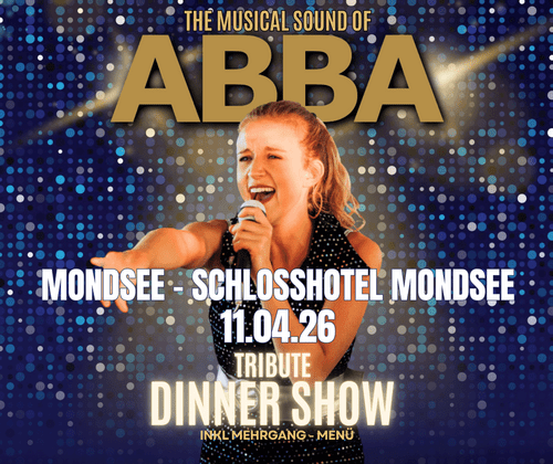 Tickets: https://www.oeticket.com/event/abba-dinner-show-the-musical-sound-of-abba-schlosshotel-mondsee-21219881/?affiliate=B38
