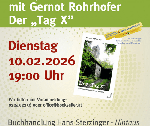 In seinem Buch "Der Tag X - die Umsturzfantaisen der Rechten" arbeitet Gernot Rohrhofer die Vorkommnisse rund um die Familie Rene Schimanek und die Waffenfunde im Forsthaus Langenlois im Nov. 2024 auf.