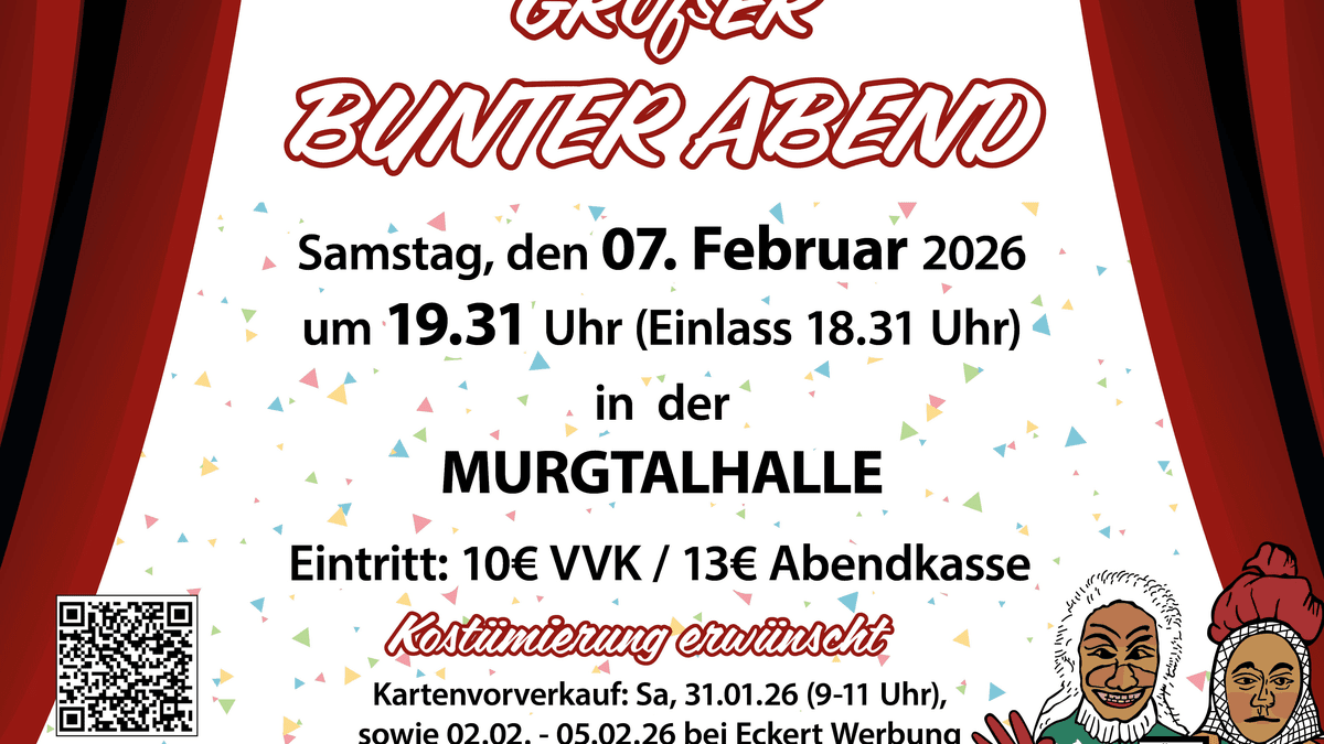 Fährigeister, Helgeringer Maidli und die Elferräte laden herzlich ein! Die Narrenzunft lädt zu einem unvergesslichen Bunten Abend ein! Ein abwechslungsreiches Programm erwartet euch: Mitreißende Guggemusik, schwungvolle Tänze, humorvolle Sketche und unterhaltsame Einlagen garantieren beste Stimmung. Ob Schunkeln oder Tanzen – hier kommt jede Närrin und jeder Narr auf ihre Kosten!