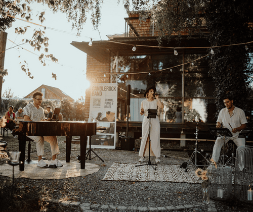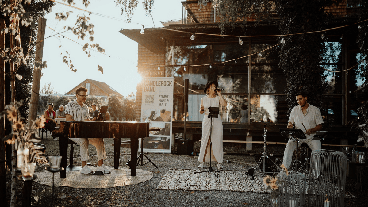 Laue Sommernächte und traumhafte Sonnenuntergänge mit musikalischer Untermalung. Candlerock Band: Stimme, Piano & Beats Pop- und Rock-Klassiker erscheinen bei der Candlerock Band in einem neuen Sound – mit kraftvollem Gesang, gefühlvollem Piano und groovigen Beats. Von Gänsehautmomenten bis hin zur ausgelassenen Partystimmung liefert die Band den Soundtrack für einmalige Musikerlebnisse. Sie bringen die Freude und den Spaß der Musik zu jeder Veranstaltung. Das Repertoire reicht von Hits der 80er- und 90er-Jahre bis hin zu modernen Partysongs und Pop. Mit kraftvollen Tracks und gefühlvollen Balladen schaffen sie eine unverwechselbare Atmosphäre. Ihre Spezialität sind einzigartige Medleys, die das Publikum begeistern und für ausgelassene Stimmung sorgen. Sie laden ein, zu einer musikalischen Reise, die man nicht vergessen wird. Gut zu wissen Die Konzerte finden nur bei guter Witterung statt. Übrigens Unsere SeeferienKonzerte unplugged sind ausgezeichnet als Green Event BW – denn unsere Umwelt ist uns wichtig. Wir als Veranstalter achten daher auf die nachhaltige Durchführung unserer Veranstaltung wie z.B. die konsequente Müllvermeidung und Mülltrennung. Auch Sie können etwas für die Umwelt tun und z.B. mit den öffentlichen Verkehrsmitteln oder mit dem Rad zu den SeeferienKonzerten unplugged kommen.