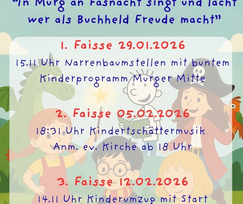 Ein alte Tradition: mit Pauken, Trommeln, Eisenstücken oder Sägeblätter Lärm machen! Macht mit bei der schönen Tradition des Tschätterns am 2. Faißen. Die Kinder-Tschättermusik - begleitet von den Fährigeistern und den Helgeringer Maidli mit brennenden Fackeln - führt von der Langmattstraße bis zur Murger Mitte. Dort beginnt um 19.11 Uhr das Gugge-Platz-Konzert. Anmeldung ab 18 Uhr vor Ort.