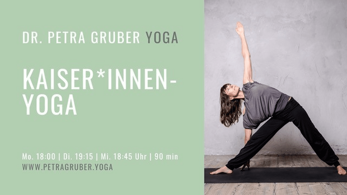 Entdecke, entfalte die Kaiserin, den Kaiser in Dir! Eine Kaiserin sorgt gut für sich selbst und feiert das Leben in seiner Vielfalt. Sie reflektiert ihre Wahrnehmungen, Gedanken, Gefühle und Verhaltensmuster und kultiviert ihre Selbstwirksamkeit. Eine Kaiserin stellt sich ihren Ängsten und lässt los, was nicht förderlich für sie und das Leben ist. Ihr Geist ist klar, friedlich und auf das Wesentliche fokussiert. Ihre Handlungen sind bewusst und achtsam. Eine Kaiserin urteilt nicht und pflegt nährende Beziehungen. Sie versucht nicht, andere Menschen entsprechend ihrer Vorstellungen und Wünschen zu verändern. Eine Kaiserin spürt die Verbundenheit mit dem großen Ganzen und gibt sich entspannt dem Fluss des Lebens hin. Sie vertraut ihrer inneren Weisheit, entfaltet ihre schöpferische Kraft und strahlt von innen. Eine Kaiserin ist innerlich frei. Auch Kaiser sind willkommen! Der Kurs ist insbesondere auch für Männer geeignet, die erkannt haben, dass das Streben nach Geld, Prestige und Macht sie unzufrieden, erschöpft und sinnentleert zurücklässt. Für Kaiser, die spüren, dass Leistung allein krank macht und die sich mehr Balance zwischen Aktivität und Entspannung, Kontrolle und Vertrauen sowie Verstand, Körper und Seele wünschen und die es wagen, ihr Herz zu öffnen.Mehr Infos zum gesamten Kursprogramm >> https://www.petragruber.yoga/#KURSE