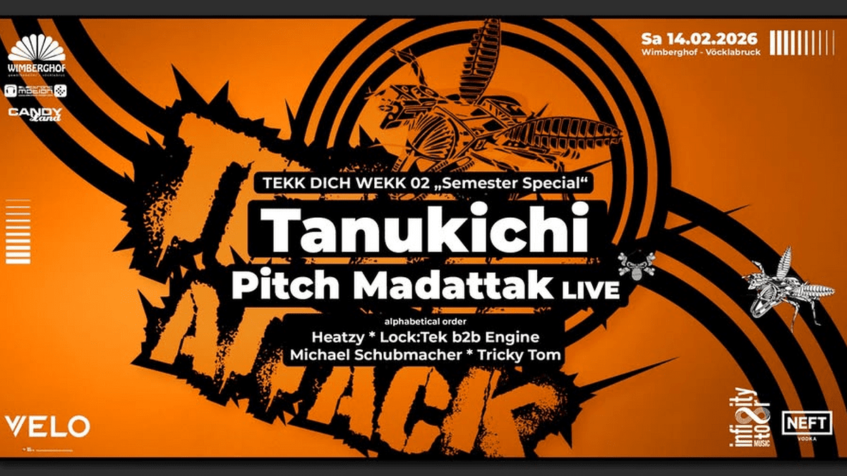 TEKK DICH WEKK steht für klare Ästhetik, harte Grooves und Nächte, die in Erinnerung bleiben. Starte die Semesterferien und das Carneval Weekend dort, wo Sound, Raum und Energie verschmelzen.
