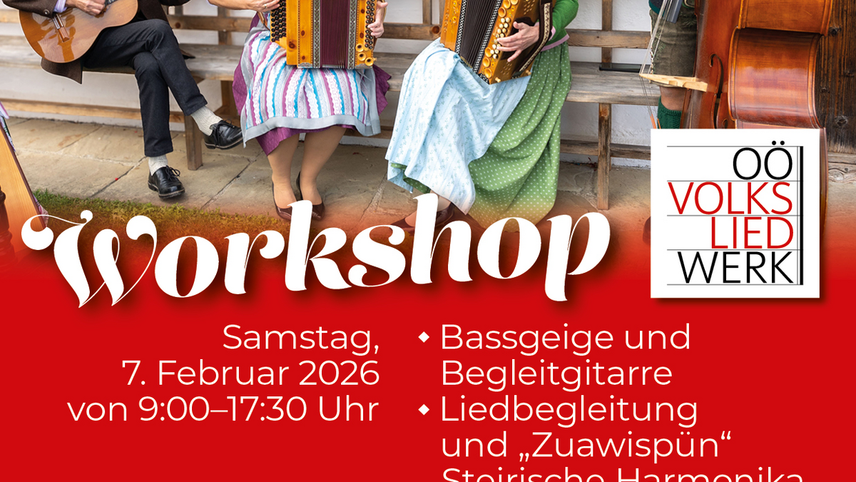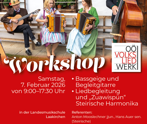 Workshop für Bassgeige & Begleitgitarre sowie Liedbegleitung & Zuawispün für Steirische Harmonika 09:00 Uhr
