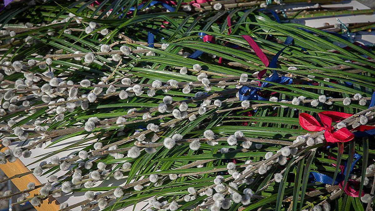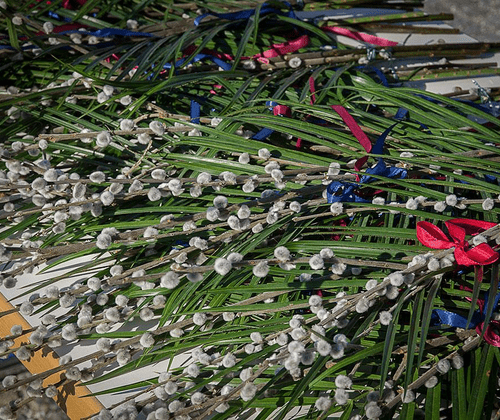 Gottesdienst und Palmweihe anschließend Frühschoppen im PfarrsaalBoží služba a požehnání ratolestí, následně ranní káva v farním sáleMsza i poświęcenie palm, a następnie spotkanie przy piwie w sali parafialnejWorship service and palm blessing followed by a breakfast gathering in the parish hallServizio religioso e benedizione delle palme seguito da un caffè nel salone parrocchialeEucharistieviering en palmpasenviering, gevolgd door een ontbijtbuffet in de parochiezaal