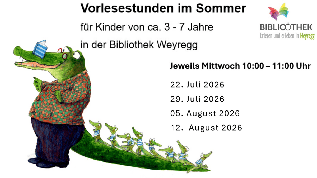 Vorlesestunde für Kinder in der Bibliothek Weyregg in den Sommerferien