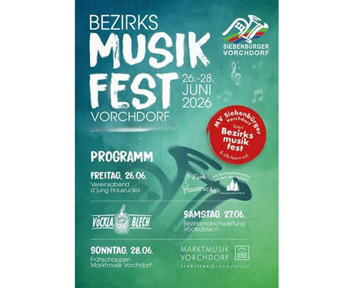 SAVE THE DATE - BEZIRKSMUSIKFEST DER SIEBENBÜRGER MUSIK VORCHDORFWas steht am Programm? Freitag, 26. Juni 2026