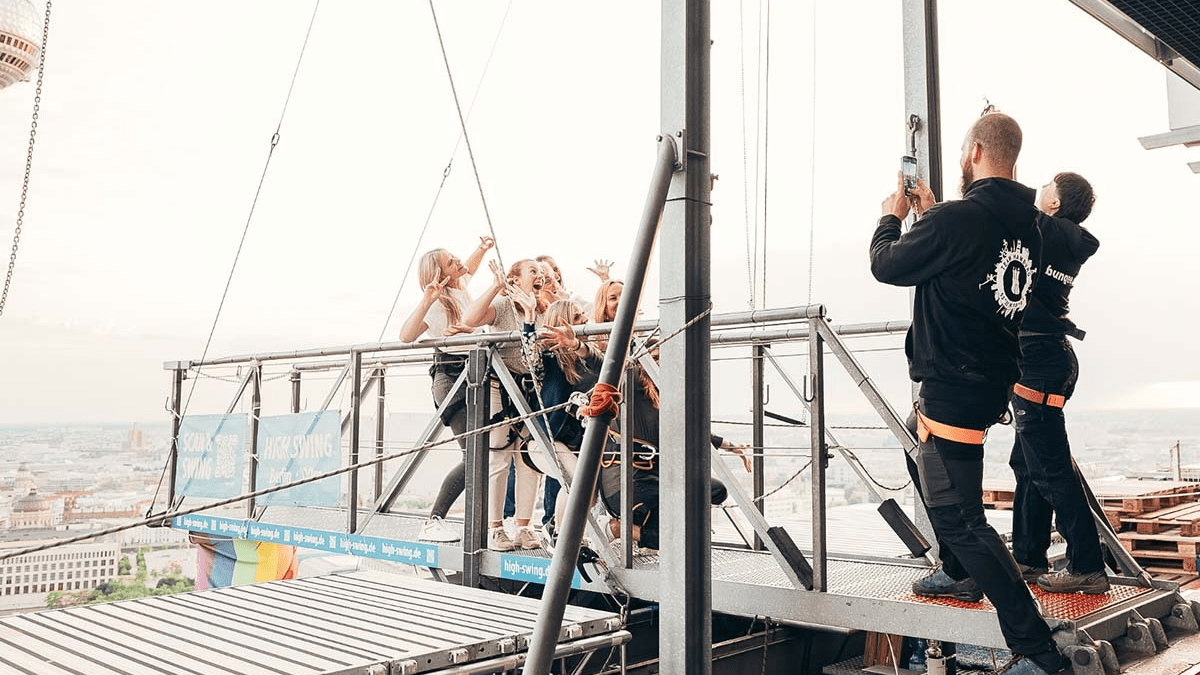 Extremer Blick über Berlins Skyline Hoch oben auf der Dachterrasse des Park Inn Hotels am Alexanderplatz wartet ein außergewöhnliches Abenteuer auf dich. Beim Sky Walk Berlin gehst du rund 120 Meter über dem Stadtzentrum entlang eines etwa sechs Meter langen Stegs direkt an der Dachkante. Vor dir öffnet sich ein Panorama samt Fernsehturm, Rotem Rathaus und Brandenburger Tor. Nach der Anmeldung erhältst du eine kurze Einweisung, legst den Gurt an und sicherst dein Smartphone für spektakuläre Aufnahmen. Zwischen leichter Action und entspanntem Blick über Berlin wächst der Nervenkitzel mit jedem Schritt. Ob bei klarem Tag, goldenem Sonnenuntergang oder funkelnden Lichtern am Abend – trau dich und geh den Sky Walk selbst. Inhalt Skywalk (Rampe) in 120m Höhe auf der Aussichtsterrasse des Park Inn Hotels am Alexanderplatz Eintritt für die Dachterrasse des Park Inn Hotels inklusive ​​Einweisung und ​​Betreuung durch einen erfahrenen Instruktor Foto-/Video-Paket vor Ort gegen Aufpreis buchbar Teilnehmer Gutschein gültig für 1 Person Dauer Gesamtdauer: ca. 30 Minuten Reine Erlebnisdauer: ca. 5 Minuten Ausrüstung & Kleidung Mitzubringen: wettergerechte Kleidung Wird gestellt: professioneller Sicherheitsgut Teilnahmebedingungen Mindestalter: 12 Jahre (unter 18 Jahren nur mit Einverständniserklärung eines Erziehungsberechtigten) Gewicht: max. 118 kg Teilnahme für Personen mit Handicap nach Absprache mit dem Veranstalter möglich