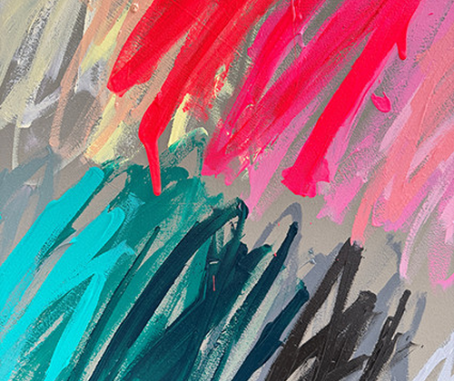 Die Ausstellung COLORED EMOTION präsentiert aktuelle Arbeiten der Künstlerin Christina Gschwantner, deren Werk an der Schnittstelle von gestischer Abstraktion und struktureller Ordnung angesiedelt ist. Farbe, Bewegung und Rhythmus bilden die zentralen Parameter ihres künstlerischen Ausdrucks. Ihre Malerei untersucht das Spannungsverhältnis zwischen emotionaler Spontaneität und formaler Disziplin – ein Balanceakt, der sich als fortlaufender Dialog zwischen Intuition und Konstruktion verstehen lässt.