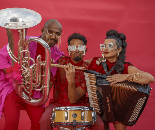 Mit unbändiger Energie und einer Bühnenpräsenz, die sofort fesselt, sprengt Lívia Mattos jede Erwartung an das Akkordeon. Die charismatische Künstlerin aus Salvador-Bahia verbindet Musica Popular Brasileira mit globalen Klangfarben, Zirkus-Spirit und unerschöpflicher Kreativität. Verve krönt ihre gefeierte Trilogie und vereint brasilianische Tradition mit experimenteller Offenheit. Gemeinsam mit Tuba und Schlagzeug entsteht ein elektrisierender Sound, der Leichtigkeit und Tiefe spielend vereint. Mit ihrem kraftvollen Trio verwandelt sie das Akkordeon in ein Instrument grenzenloser Freiheit und spielerischer Fantasie. Westafrikanische, indische und brasilianische Einflüsse verschmelzen zu einem farbenreichen Klanggewebe, das gleichermaßen berührt und verführt. Jede Performance wird bei ihr zu einem vitalen Erlebnis voller Musik, Tanz und theatraler Ausdruckskraft. Seit ihrem umjubelten WOMEX-Showcase ist sie ein gefragter Gast auf internationalen Bühnen. Lívia Mattos steht für eine neue Generation brasilianischer Künstlerinnen mit starkem eigenem Ausdruck.
