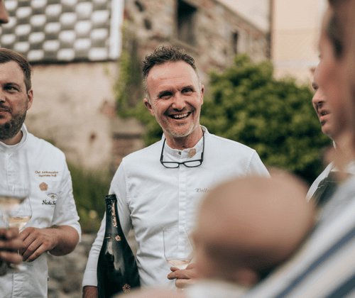 präsentiert auf verschiedenen Stationen, begleitet von edlen Rebsorten und coolen Drinks sowie Live-Musik. An der Seite unseres Service- & Küchenteams stehen herausragende Köche, die mit Ihrem Können und Ihrer Expertise jede Speise zu einem Meisterwerk machen.