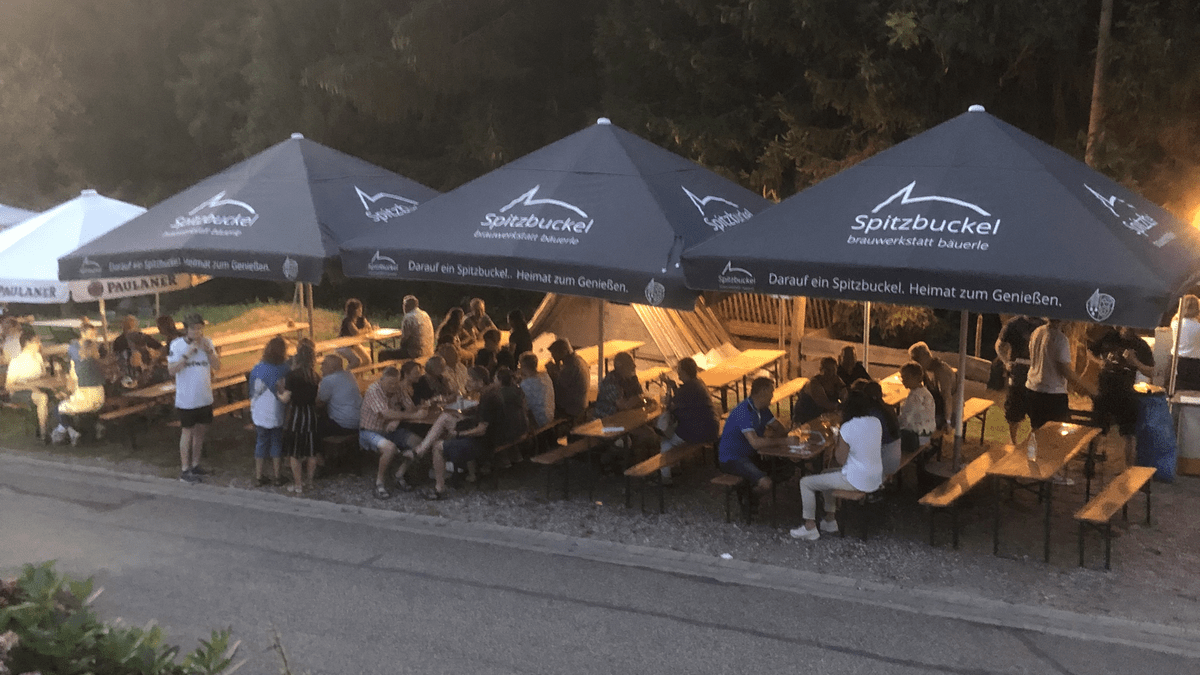 Hock am Spitzbuckel vor der Brauwerkstatt