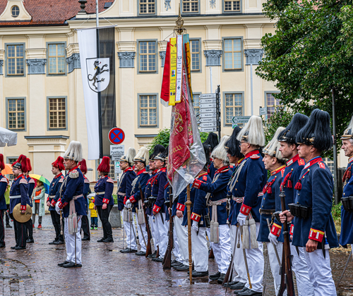 Montfortfest – das heißt: ein verlängertes Wochenende in Feierlaune, mit Fassbier, Musik, historischem Festumzug und Feuerwerk. Am ersten Juliwochenende lädt Tettnang ein. Das historische Kinder- und Heimatfest begeistert mit einem bunten Rahmenprogramm. Grafen sind Namensgeber Tettnang ist ehemalige Montfort-Residenz. Über 500 Jahre beeinflusste das Adelsgeschlecht die Entwicklung der Stadt. So wundert es nicht, dass das Tettnanger Kinder- und Heimatfest den Namen der Grafen trägt. Obwohl es Kinderfeste bereits im 19. Jahrhundert gab, geht die eigentliche Geburtsstunde auf das Jahr 1956 zurück. Damals beschlossen Bürgermeister und engagierte Bürger ein Fest für die Tettnanger Kinder zu organisieren. Historischer Festumzug Die Montforter Burgen und Schlösser, Unser täglich Brot, Aus der Welt des Kindes, Tettnanger Geschichte und Zünfte sind die Themenwelten, die mehr als 1.000 Kinder und Erwachsene in einem Umzug mit über 100 Gruppen vorstellen. Sonntag, 11 Uhr, schießen Böllerschützen den Umzug vor der Ehrentribüne auf dem Montfortplatz an. In bunter Folge, begleitet von zahlreichen Musikkapellen aus der Region, ziehen Adlige, Handwerker, Erntehelfer, Traumfiguren, Bürger und Unternehmer in Kutschen und Fuhrwerken, zu Pferd und zu Fuß durch die Innenstadt. Eröffnung mit Bieranstich Wo, wenn nicht im Park des neuen Schlosses sollte das Montfortfest seinen Anfang nehmen? Am Freitagabend eröffnen der Bürgermeister der Stadt und der Vorsitzende der Montfortfest-Kommission gemeinsam mit den Tettnanger Hopfenhoheiten das Fest. Der Sternmarsch der Fanfarenzüge geleitet Besucher zur Bühne, wo ein Fass Bier darauf wartet, angestochen zu werden. Wohl bekomm's! Aktionswiese für Kinder und Jugendliche Im unteren Schlosspark ist Spiel und Spaß angesagt. Kinder und Jugendliche können sich von dem kostenlosen Angeboten der Monfortfest-Kommission überraschen lassen. Vom Bällebad über Cornhole bis hin zum klassischen Hufeisenwerfen, für jeden ist etwas dabei. Mit den "Spaßmachern" gestaltet jedes Kind sein individuelles Kunstwerk. Vergnügungspark Direkt am Festplatz lässt der Vergnügungspark mit Fahrgeschäften für groß und klein die Augen der Besucher leuchten. Bewirtung im Schlosspark Vereine aus Tettnang und Region verköstigen die Besucher auf der Festwiese. Das kulinarische Spektrum reicht vom deftigen Steak bis zum vegetarischen Dinnete, vom gesunden Orangensaft bis zum leckeren Weißbier. Und als Nachtisch gibt es süße Köstlichkeiten an Extra-Ständen.