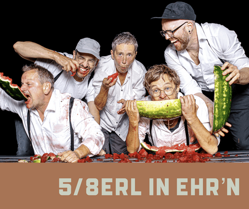 Eine Institution der österreichischen Musiklandschaft feiert ihr 20jähriges Bandbestehen. 5/8erl in Ehr´n haben mit ihrem WIENER SOUL wohl den gemütlichsten und lässigsten Beitrag zum Austropop geleistet. Begonnen hat’s als Insider Tip mit groovigen Mundart Songs und Anlehnungen am Wienerlied, bald mit ihrem ersten Hit SIASSE TSCHICK ging’s aber Richtung FM4 und Popkultur. Divers ist das Oeuvre der Band, genauso wie ihr Publikum. Ihr Song BADESCHLUSS ist der wohlige, melancholische Schlusssong in den Wiener Bädern und machte die Band legendär, vom Schafbergbad bis ins Gänsehäufel. Den Refrain von VAPORIZER singt man in Berlin genauso textsicher mit wie in Graz. „Wie wenn Stevie Wonder eine Sachertorte geraucht hätte!“ heissts im Bayerischen Rundfunk. Garantiert ist ein stimmungsvoller Abend, der die ganze Bandbreite der Band auffächert: von der gefühlvollen Ballade bis zur komischen Burleske. Feiern wir alle mit, schneiden wir die Geburtstagsmelone an, schön dass es die 5/8erln gibt!