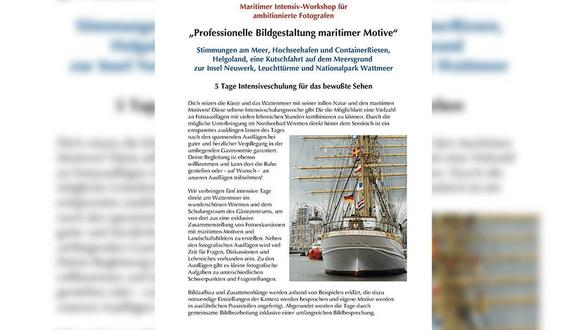 Professionelle Bildgestaltung maritimer Motive - Intensivkurs