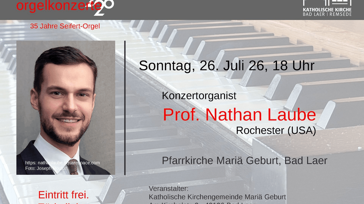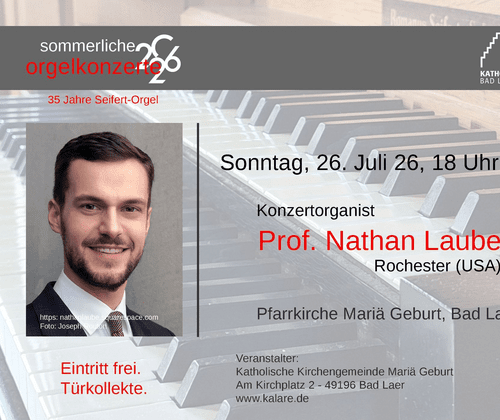 Sommerliche Orgelkonzerte 2026 - Nathan Laube 0 Uhr