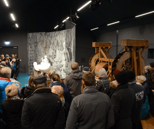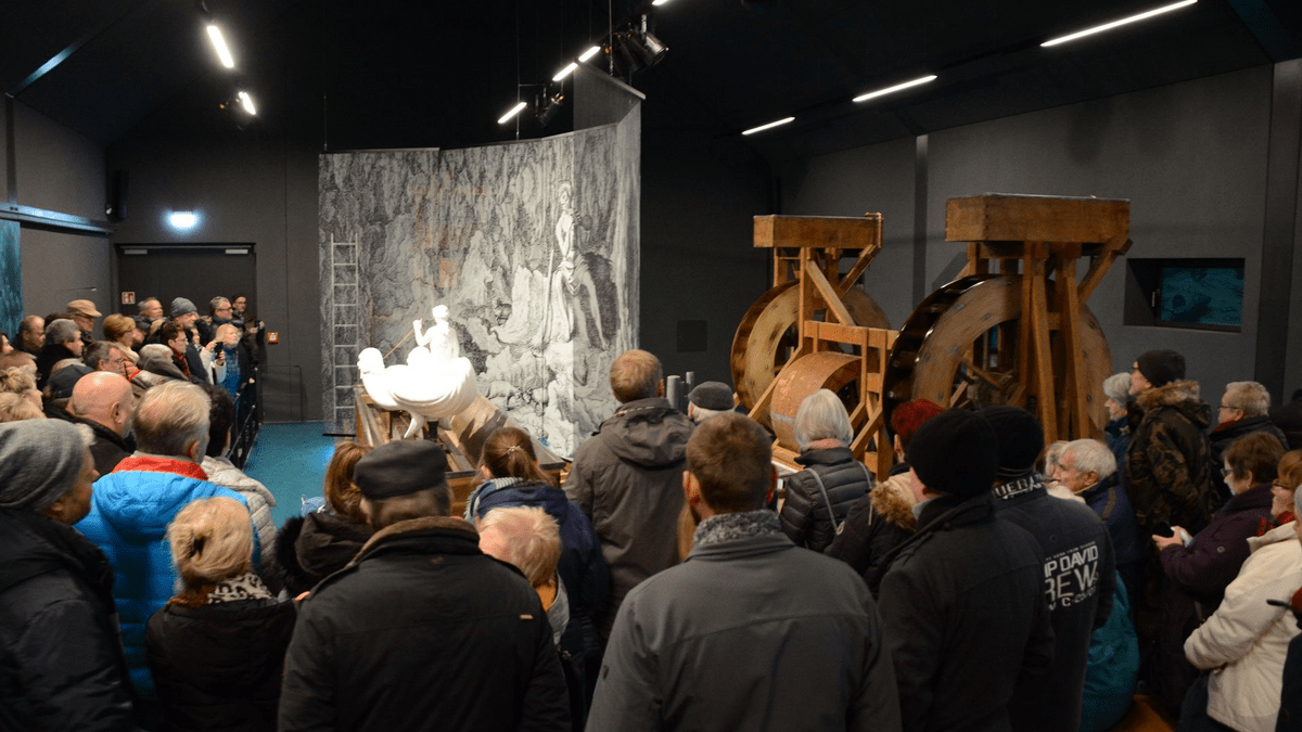 Dafür werden die Naturkräfte des Wassers und der Luft gebändigt und zielgerichtet ausgenutzt, um die Räder zu bewegen und die Orgeltöne hervorzubringen. Die Kunst der Mechanik und des Maschinenbaus, die Bildhauerkunst, die Kunst des Orgelbaus und die Komposition von Musik fügen sich in der Musikmaschine des Salomon de Caus zu einem eindrucksvollen Gesamtkunstwerk. Salomon de Caus wählte als Erzählung für sein mechanisches Theater die Sage von Polyphem, Acis und Galatea. Zusätzlich: Im Zeitraum von April bis einschließlich Oktober finden von Montag bis Freitag, außer an Feiertagen, jeweils um 11:00 Uhr Wartungsläufe der Musikmaschine statt.