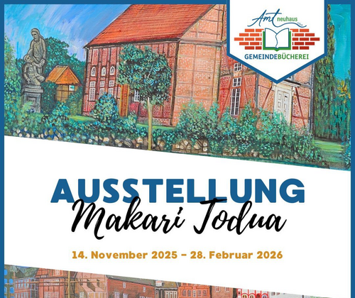 Makari Todua stellt seine Kunstwerke von und um Amt Neuhaus in der Bücherei Amt Neuhaus (Am Markt 5, 19273 Neuhaus) aus. Noch bis zum 26.02.2026. Öffnungszeiten: Dienstag: 15:00 - 18:00 Uhr Mittwoch: 13:00 - 16:00 Uhr Donnerstag: 10:00 - 16:00 Uhr