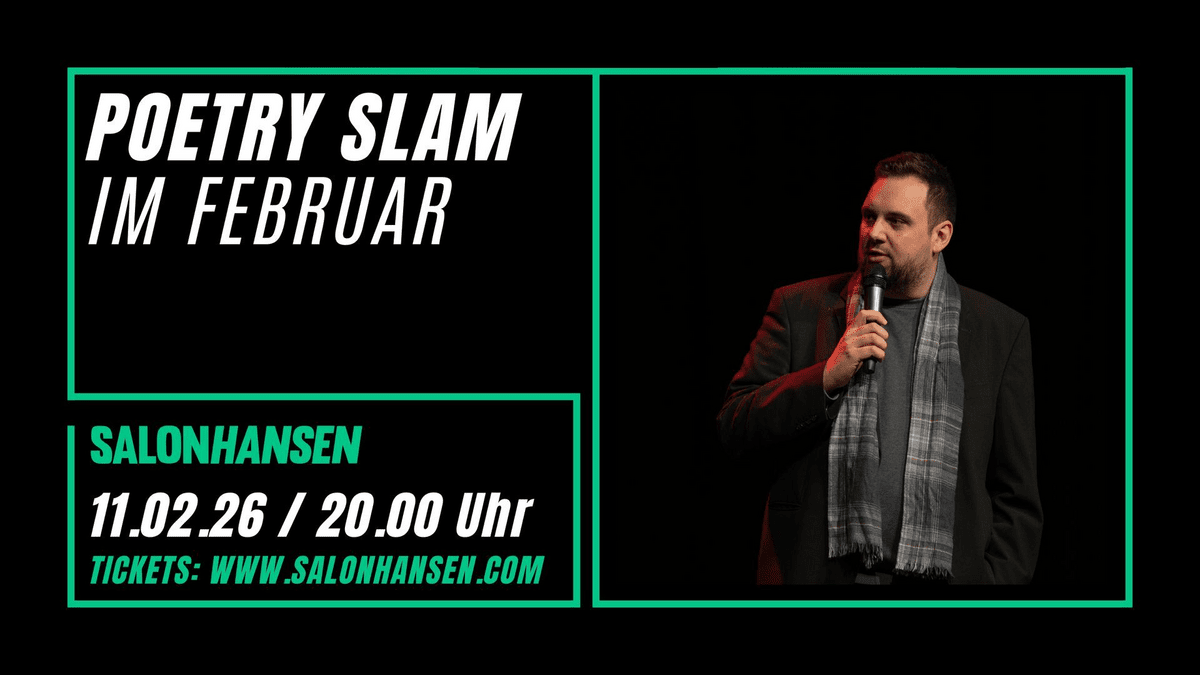 In schönster Club-Atmosphäre wird sich wieder mit Worten duelliert. ⌾ DATUM: 11.02. ⌾ BEGINN: 20.00 (EINLASS: 19.30) ⌾ EINTRITT: 13€ im Vorverkauf | 15€ an der Abendkasse ⌾ TICKETS: https://salonhansen.com ⌾ ALTER: ab 16 Jahren Am 11.02.2026 treffen sich die besten Poetry Slammer innen Norddeutschlands auf der Bühne des Salon Hansen. Poetry Slam ist ein Live-Dichter innenwettstreit. Die Auftretenden haben fünf Minuten Zeit das Publikum von sich und ihren Texten zu überzeugen. Dabei wird es mal laut, mal leise, mal komisch, mal herzerwärmend, ob politisches Kabarett oder tiefgründige Lyrik, alles ist erlaubt und all das gehört auf die Slam Bühne. Poetry Slam ist Vielfalt, Kunst und Unterhaltung alles in einer Veranstaltung vereint und am Ende entscheidet das Publikum was ihnen am besten gefallen hat, um den oder die beste n Poet in des Abends zu ermitteln. #salonhansen #Veranstaltung #lüneburg #SaveTheDate #happymoments #poetryslam