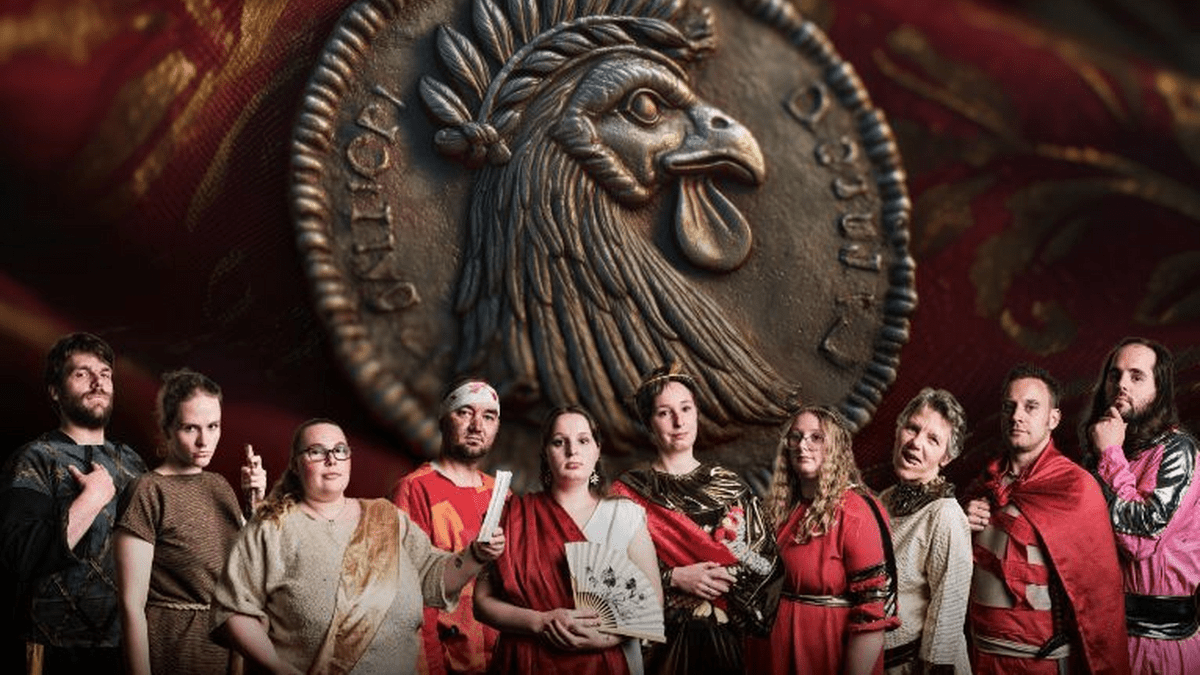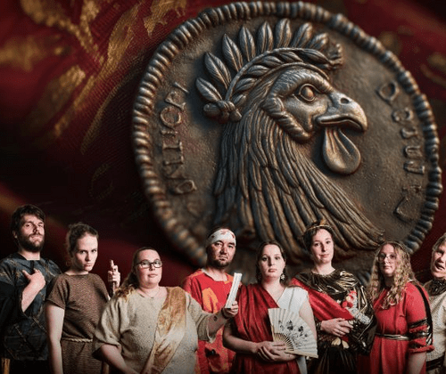 Die Theatergruppe Augenzwinkern am 21. Februar 2026 ROMULUS DER GROSSE  -unter der Regie von Gertrud Auge- Beginn: 19.00 Uhr im Fehntjer Forum, Rhauderfehn (Einlass 18.30 Uhr) - Jetzt Tickets kaufen Eine Reihe von Theaterschauspieler innen im Hintergrund eine goldene Münze mit einem Adler abgebildet © Gertrud Auge ROMULUS DER GROSSE - Am Ende eines Reiches  Friedrich Dürrenmatts Komödie Romulus der Große spielt im Jahr 476 n Chr., am Vorabend des Untergangs des Weströmischen Reiches. Im Mittelpunkt steht Kaiser Romulus, der letzte Herrscher in Rom. Doch statt verzweifelt den drohenden Einfall der Germanen abzuwehren, widmet er sich scheinbar gleichgültig ganz anderen Dingen.  Mit viel Humor und scharfem Witz stellt Dürrenmatt Fragen nach Macht, Verantwortung und der Rolle des Einzelnen in der Geschichte. Das Stück ist zugleich tragisch und komisch, ernst und ironisch – ein Spiegel menschlicher Schwächen und politischer Absurditäten. Die Theatergruppe Augenzwinkern unter der Regie von Gertrud Auge (TAG Theater) führt diesen Klassiker mit mit viel Spielfreude und Humor auf.  Normalpreis: 15,00 Euro Ermäßigter Preis: 10,00 Euro für SchülerInnen, StudentInnen, Gehandicappte, RentnerInnen, Arbeitslose Eintrittskarten-Bestellung: an der Information der Hauptstelle der Volksbank eG Westrhauderfehn oder im Ticketshop von Nordwest-Ticket  Veranstalter: Theaterpädagogische Arbeitsgemeinschaft (TAG-Theater) Rhauderfehn / Leer, Gertrud Auge