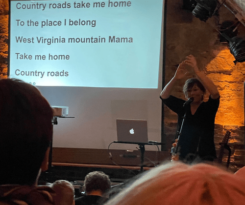 Wir schmettern gemeinsam Pop, Schlager und Evergreens mit Anleitung von Tina Wiening und Textprojektion. Ab 22 Uhr wird die Bühne freigegeben für alle und es gibt: KARAOKE !