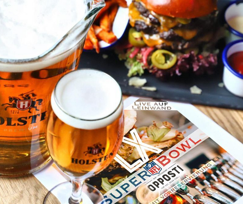 Das Football-Event des Jahres! Erlebe den Super Bowl live im Opposti in Stade – auf 9 Displays und Großbildleinwand mit bester Atmosphäre! Genieße dabei nicht nur leckeres Essen, sondern auch coole Drinks und ein Special Super-Bowl-Menü, dazu Hammer-Stimmung gemeinsam mit anderen Football-Fans. Und wer im Trikot eines Finalisten erscheint, erhält eine kleine Überraschung! Preis p.P.: 25,- € Im Ticketpreis enthalten: 1x Smash Cheeseburger mit Pommes oder 1x Spareribs mit Pommes oder 1x Chicken Wings mit Pommes.