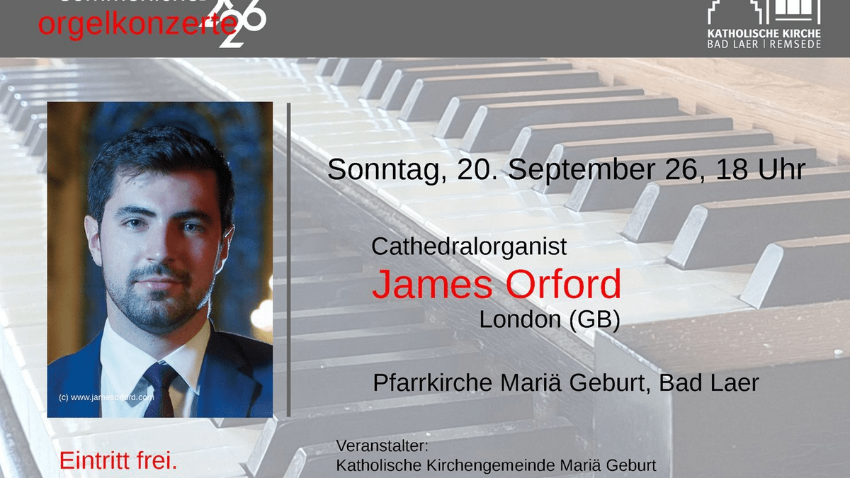 Sommerliche Orgelkonzerte 2026 - James Orford 0 Uhr