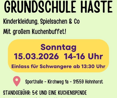 Flohmarkt der Grundschule Haste Kinderkleidung, Spielsachen, & Co. Mit großen Kuchenbuffet!