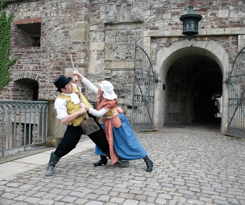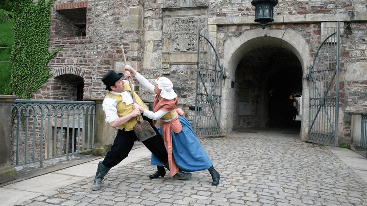 Szenisch-historsiche Schlossführung Wissen Sie eigentlich genau, wo das riesige Bett stand, in dem der Fürst mit gleich zwei Ehefrauen lag. Wo befanden sich das Schlafgemach nebst Ankleidezimmer der Fürstin? Wozu dienten wohl die sogenannten Kavaliershäuser auf dem Schlosswall? Wo genau erblickte die spätere Königin Emma zum ersten Male ihren Bräutigam? War es Liebe auf den ersten Blick Und: Kann man sich in Bad Pyrmont wirklich jede halbe Stunde, 120 Mal verlieben. Diesen Fragen und noch viel mehr gehen der Brunnenarzt Johann Erhard Trampel und seine Gattin Anna Dorothea aus dem 18. Jahrhundert nach. Auf höchst amüsante Weise werden die Besucher aus dem 21. Jahrhundert mit den historischen Gepflogenheiten, Fakten, Fabeln und Legenden rund um die Geschichte des Ortes und über die Schlossanlage von Bad Pyrmont vertraut gemacht. Ganz nebenbei erhalten die Gäste auch einen kleinen Einblick in das turbulente Eheleben der temperamentvollen Trampels!
