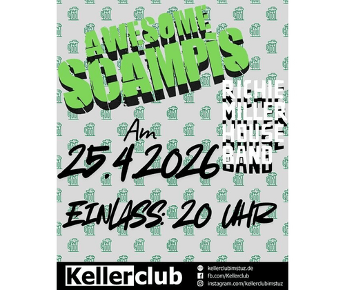 Die Awesome Scampies kommen mit Richie Miller Houseband nach Clausthal-Zellerfeld. Einlass: 20:00 Uhr Start: 21:00 Uhr Eintritt Abendkasse: 10€ Vorverkauf: 7,50€ Tickets können an der Theke reserviert werden oder bei Tix For Gigs gekauft werden.