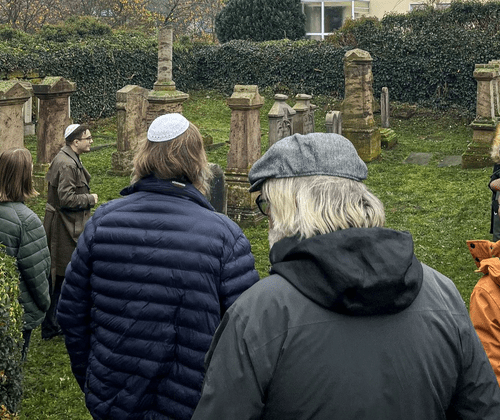 Die KZ-Gedenk- und Dokumentationsstätte Porta Westfalica und die Arbeitsgemeinschaft Jüdischer Friedhof Hausberge der Gesamtschule Porta Westfalica laden gemeinsam zu einer Führung zu den Spuren Jüdischen Lebens an der Porta Westfalica ein. Jahrhundertelang waren jüdische Bürgerinnen und Bürger ein fester Bestandteil der Stadtgesellschaft von Hausberge. Im Rahmen der Führung entdecken die Teilnehmenden die Orte, die untrennbar mit der jüdischen Geschichte Hausberges verbunden sind. Der Michelsohnplatz befindet sich gegenüber des Grundstücks, auf dem bis in die 1930er-Jahre das Synagogengebäude im Garten des Wohn- und Geschäftshauses der Familie Michelsohn stand. Von dort aus führt der Weg über die Hauptstraße an den Stolpersteinen für die Familie Pinkus vorbei. Die Führung endet auf dem Jüdischen Friedhof Hausberge an der Kempstraße. In der Geschichte des Friedhofs spiegeln sich nicht nur Jahrhunderte jüdischer Begräbniskultur wider, auch kulturelle und gesellschaftliche Entwicklungen sowie die Ausgrenzung und Verfolgung während der NS-Diktatur werden an vielen Stellen sichtbar. Die Führung dauert etwa 90 bis 120 Minuten. Parkmöglichkeiten finden sich rund um den Michelsohnplatz oder in etwas weiterer Entfernung an der Kempstraße auf Höhe des Rathauses. Auf dem letzten Abschnitt der Führung führt der Weg ein steiles Stück die Kempstraße hinauf. Im Bereich des Friedhofs selbst ist das Parken nur sehr eingeschränkt möglich.