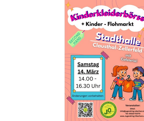 Der Jugendring Oberharz veranstaltet am Samstag, den 14.03.2026, in der Zeit von 14:00-16:30 Uhr, die 59. Kinderkleiderbörse mit Kinder-Flohmarkt. Weitere Informationen und Anmeldung für einen Verkaufsstand unter www.jugendring-oberharz.de