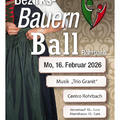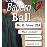 Endlich ist es wieder soweit: Am Rosenmontag, den 16.02.2026, findet unser Bezirksbauernball im centro statt.Nach dem Auftanz der Volkstanzgruppe-Rohrbach und der Begrüßung begleitet uns das „Trio Granit“ durch den Abend.