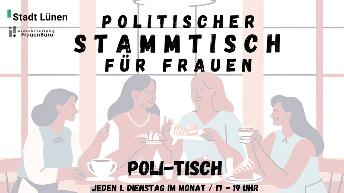 Der "Poli-Tisch" ist ein politischer Stammtisch für Frauen, der regelmäßig im mitmach.RAUM in Lünen stattfindet. In ungezwungener Atmosphäre werden aktuelle politische Themen diskutiert. Eine Parteizugehörigkeit oder spezifische Vorkenntnisse sind nicht erforderlich. Der Fokus liegt auf einem vielfältigen Meinungsaustausch unter Wahrung demokratischer Werte.
