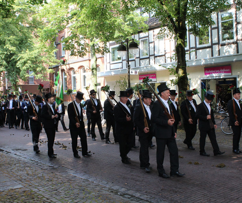 Während der Festtage findet auch das Pellkartoffelessen statt und Höhepunkt ist der große Ausmarsch am Montag. Bereits Ende des 13. Jahrhunderts lag der Ursprung dieses Traditionsfestes. Alljährlich trafen sich Bürgerwehren und Schützengilden in den Städten Deutschlands um ein Übungsschießen auf Papageien oder Vögel abzuhalten. Ende des 16. Jahrhunderts wurden diese Übungsschießen zu Volksfesten ausgerufen. Aus einem Brief aus dem Jahre 1654 geht hervor, dass aus dem Papageienschießen das "Scheibenschießen" geworden ist und immer der Montag nach dem Johannistag als Datum festgeschrieben wurde. Noch heute hängt an der "Königskette" des Nienburger Scheibenkönigs ein silberner Papagei als wertvollstes Stück aus dem Jahre 1581. Programmablauf:   Freitag um 17 Uhr – Festauftakt mit den Ortsteilen Samstag um 17 Uhr – Andacht, Ummarsch durch die Altstadt und Zapfenstreich um 23 Uhr Sonntag um 14 Uhr – Kinderbelustigung/Familientag auf dem Scheibenplatz Montag um 8 Uhr – Scheibenschießen-Montag (Ausmarsch) Mittwoch – Öffentliche Preisübergabe vor dem Rathaus und anschließend Pellkartoffelessen in der Altstadt