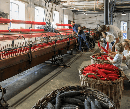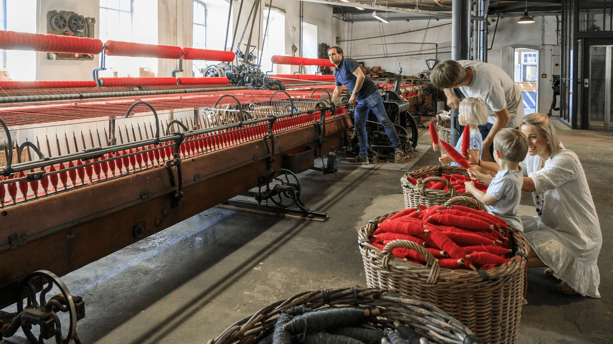 Tauchen Sie ein in die untergegangene Welt der Tuchmacher. Über 400 Jahre arbeiteten sie in den historischen Gebäuden auf dem Bramscher Mühlenort. Vom Waschen der Wolle über das Spinnen, Weben und Färben bis zum fertigen Wollstoff braucht es zahlreiche Arbeitsschritte, die im Museum in zwei Zeitschienen an laufenden Maschinen gezeigt werden. So wird der Übergang vom Handwerk zur industriellen Produktion erlebbar. Das Führungsentgelt ist im Museumseintritt enthalten.