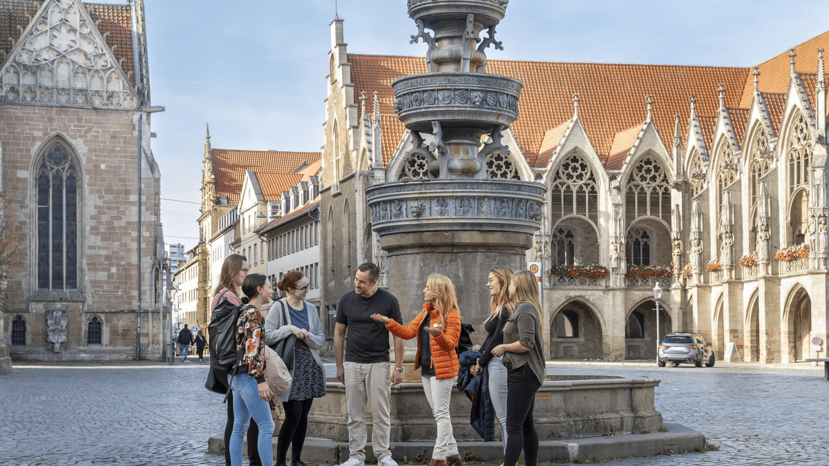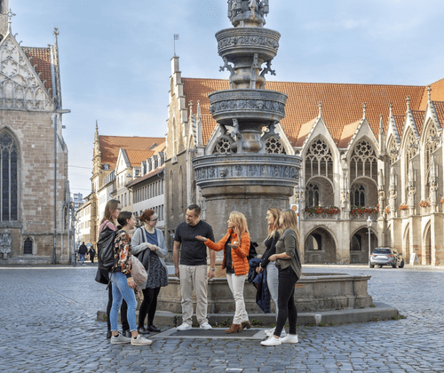 Diese Stadtführung vermittelt Ihnen Einblicke in die spannende Historie der Löwenstadt. Sie schlendern nach Feierabend entspannt durch mittelalterliche Gassen und entdecken an historischen Plätzen die Spuren der Hansekaufleute und der Welfen, die Braunschweig über Jahrhunderte geprägt haben. Ihr Weg führt Sie vom historischen Altstadtmarkt über den Dom St. Blasii, zum Burgplatz mit der Burg Dankwarderode und Braunschweigs Wahrzeichen, dem Löwen, bis zum Residenzschloss.