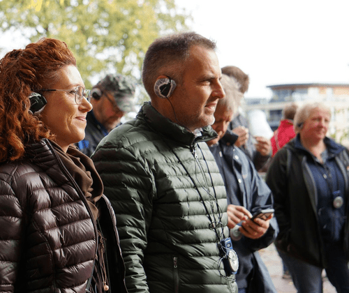 Unter dem Motto "Besser hören für alle" bieten wir in Zusammenarbeit mt dem Verein "Hören ohne Barriere - HoB e.V." Führungen an, die sich sowohl für gut Hörende als auch für Menschen, die beim Hören beeinträchtigt sind, eignen. Zum Einsatz kommt dabei eine Funkübertragungsanlage, die für diese Stadtführungen von dem Verein "Hören ohne Barriere - HoB e.V." bereitgestellt wird. Die Worte der Stadtführerin oder des Stadtführers werden mittels einer Halsringschleife unmittelbar auf das Hörgerät übertragen. Menschen ohne Hörtechnik können Kopfhörer nutzen. Eine Voranmeldung ist erforderlich, da die Teilnehmerzahl begrenzt ist.  Dauer: ca. 1,5 Stunden Hinweise: Trittsicherheit und festes Schuhwerk ist erforderlich. Die Führung findet bei jeder Witterung statt.