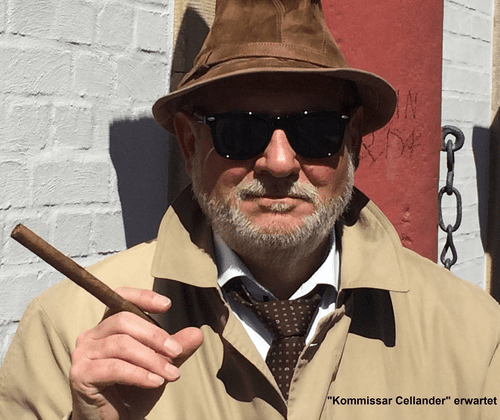 "Der Kommissar geht um..." Sie begleiten "Kommissar Cellander" auf den Spuren bedeutender Celler Kriminalfälle und tauchen ein in die Welt des Verbrechens. "Cellander" berichtet bei seinem kriminalistischen Rundgang von außergewöhnlichen Foltermethoden und Hinrichtungen im Mittelalter und von spektakulären Geiselnahmen und Mordfällen aus der jüngeren Vergangenheit. Auch das "Celler Loch" am Ort des Geschehens ist Inhalt der Tour. Informativ und kurzweilig erfahren Sie außerdem noch Wissenswertes über Celle. Die Tour dauert ca. 120 Minuten. Danach werden Sie durch "Kommissar Cellander" zur CELLER CONGRESS UNION, Thaerplatz 1, 29221 Celle begleitet. Dort wird ab 19:00 Uhr ein ausgefallenes Dinner serviert (Begrüßungsgetränk, 3-Gänge-Menü (auf vorherige Bestellung auch vegetarisch) sowie Kaffee/ Cappuccino/Espresso und Digestif. Während des Dinners Fortsetzung der Ausführungen durch "Cellander" mit einer computerunterstützten Fotopräsentation zur Stadtgeschichte, zu Hexenverfolgung und Hinrichtungen im Celler Land sowie zu herausragenden Kriminalfällen und Todesurteilen im Mittelalter durch das "Celler Halsgericht".