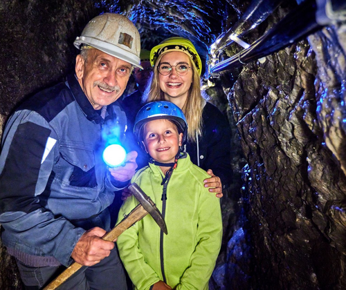 Die Kinder erleben untertage eine spannende und abwechslungsreiche Führung, erfahren Interessantes über die Arbeit und das Leben der Bergleute von damals und erreichen nach ca. 40 Minuten die Weitung des Mutter-Gottes-Lagers. Am unterirdischen See wird das Bergmannsquiz gelöst und die Kinder können anschließend Edelstein-Schätze aussieben und ihr Röhrchen füllen, welche sie dann als Souvenir mit nach Hause nehmen dürfen. Anschließend geht es noch mit einer Taschenlampenführung weiter in das Haberlandlager zu den Lüftungsschächten. DAUER: ca. 90 Minuten inklusive: kindgerechte Führung in das Besucherbergwerk "Marie Louise Stolln" Quiz und Edelsteinsieben am unterirdischen See Taschenlampenführung im Haberlandlager Bei dieser Kinderführung ist das Augenmerk und der Inhalt der Führung auf Kinder ausgerichtet, deshalb: Je Kind ist je nur 1 Erwachsener buchbar. In Ausnahmefällen ist eine andere Konstellation möglich, bitte wenden Sie sich telefonisch an das Bergwerksteam. Bitte beachten Sie, dass aus Sicherheitsgründen Kindern der Zutritt grundsätzlich erst ab 5 Jahren gestattet ist. Wir empfehlen vorab eine Buchung von Online-Tickets. Bitte möglichst Taschenlampen  mitbringen!