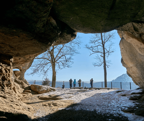 Vom Kneippheilbad in Bad Schandau führt uns der Weg mit der traditionsreichen Kirnitzschtalbahn bis hin zum Lichtenhainer Wasserfall. Von hier geht es zu Fuß zum neuen Wildenstein mit seinem gigantischen Felsentor - dem Kuhstall und bezaubernden Blick auf die hintere Sächsische Schweiz. Mit einem warmen Schluck geht es hinüber zu den fernen Felswänden über den Fremdenweg, den schon die ersten Schweizreisenden vor über 200 Jahren genommen haben. Der Aufstieg zum kleinen Winterberg wärmt uns kräftig durch und entlohnt uns mit herrlichen Aussichten. Von hier geht es weiter zum großen Winterberg und zur Kipphornaussicht. Für das Auge das Panorama, für den Körper ein Schluck Glühwein und für die Seele eine paar poetische Zeilen. Anschließend geht es hinunter ins Winterdorf Schmilka, wo unsere Tour endet und für Sie die Möglichkeit zur kulinarischen oder auch wärmenden Erholung besteht. Treff:                    09.45 Uhr an der Kirnitzschtalbahn im Kurpark Dauer: ca. 5-6 Stunden Anmeldung unter 0177-3743108 oder per Email – glueckswandern@posteo.de bis zum Vortag 12.00 Uhr Mindestteilnehmerzahl 4 Personen Für weitere individuelle Touren können Sie mich gern kontaktieren.