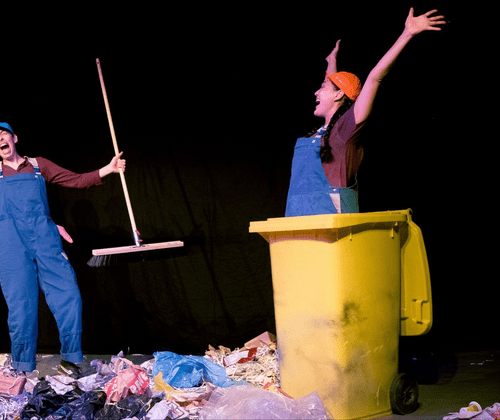 Schauspiel in englischer Sprache 2\. – 4. Klasse Platypus Theater Auf einem Schrottplatz stehen zwei Straßenfegerinnen vor der riesigen Herausforderung, ihre Stadt sauber zu halten. Doch was auf den ersten Blick als riesige Müllhaufen erscheint, entpuppt sich als überraschende Schatzkammer. Die beiden Hauptfiguren machen jede Menge aberwitzige und herzzerreißende Entdeckungen, die sie von ihrer eigentlichen Aufgabe abhalten... Ein verrücktes Theaterstück mit Hip-Hop, Musical- und Tanzelementen, das sich mit den Themen über Ordnung und Unordnung, Müll und Chaos auseinandersetzt und allen Lernanfänger:innen Lust auf die englische Sprache macht. Weitere Informationen: http://www.kleistforum.de
