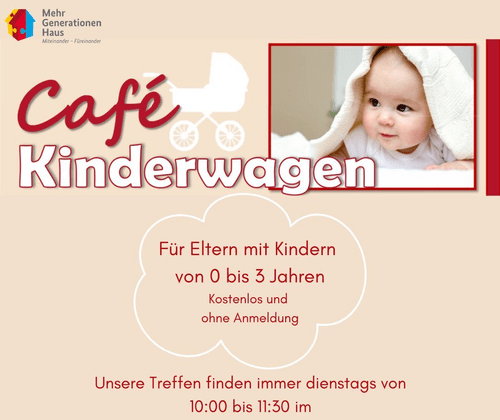 Austausch, spielen und Informationen erwarten Euch im Café Kinderwagen. Jeden Dienstag treffen wir uns von 10:00 - 11:30 Uhr im Geschwister-Scholl-Haus. Das Ganze findet kostenlos und ohne Anmeldung statt.