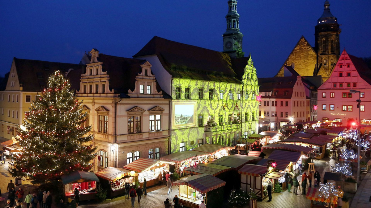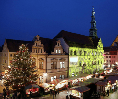 Es gibt im ganzen Weihnachtsland wohl keinen schöneren Platz für einen Weihnachtsmarkt als den um das Rathaus in Pirna. Inspiriert vom italienischen Maler Canaletto, der die Sandsteinstadt in 11 berühmten Veduten würdigte, findet hier seit 2013 der Canalettomarkt, der Pirnaer Weihnachtsmarkt statt. Er ist einer der wenigen Märkte hierzulande, die auch nach den Feiertagen noch geöffnet haben. Für manche ist der für sein einzigartiges Lichtkonzept und wunderbare Rathausprojektionen bekannte Canalettomarkt noch ein Geheimtipp. Für andere und insbesondere Familien und die vielen Gäste aus Tschechien ist er längst schon einer der schönsten sächsischen Christmärkte.