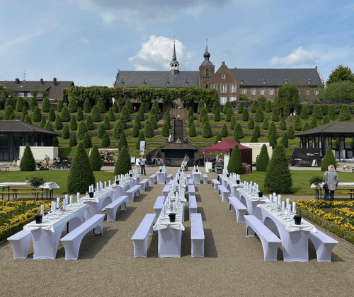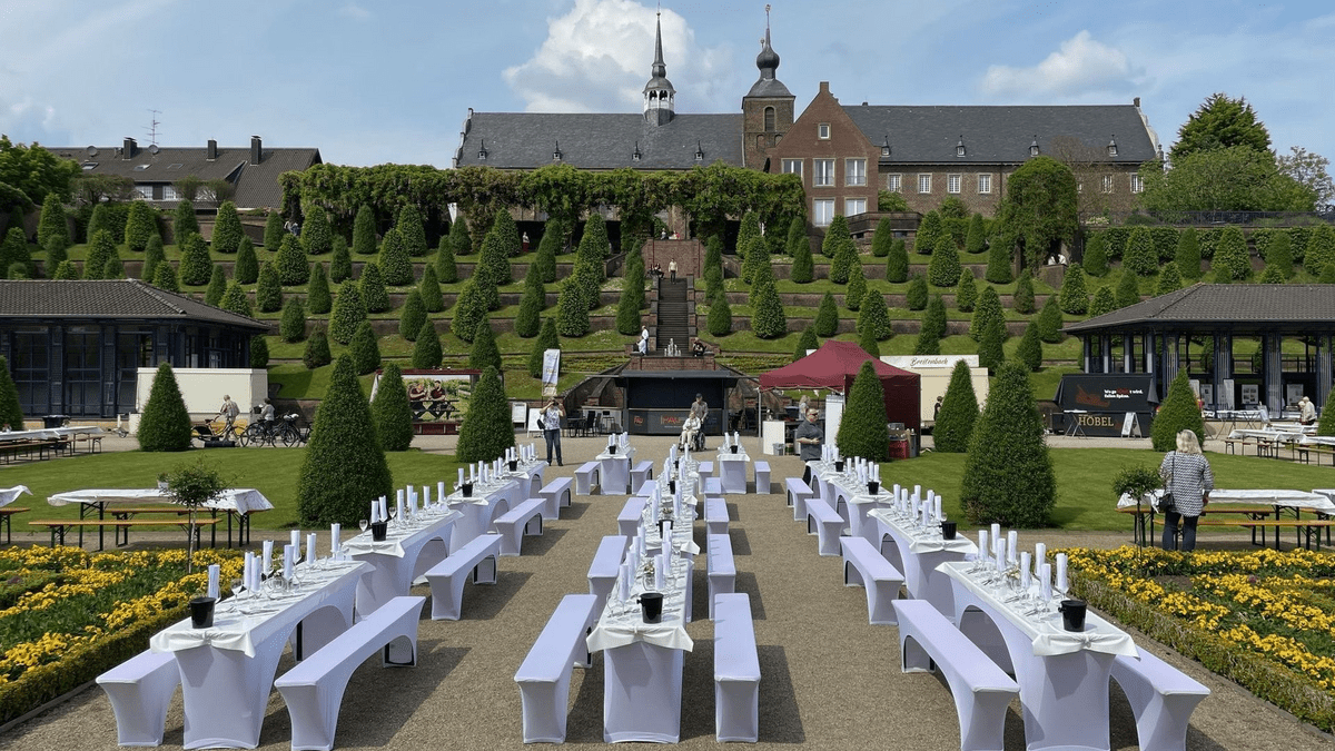 Der "Weiße Abend" im Terrassengarten des Klosters Kamp in Kamp-Lintfort bietet ein exklusives Wein-Dinner in festlichem Ambiente. Sechs Winzer präsentieren ihre Lieblingsweine, begleitet von einem 5-Gänge-Menü und einem erlesenen Apéritif. Live-Musik und Überraschungen sorgen für eine besondere Atmosphäre. Gäste werden gebeten, sich dem Anlass entsprechend in Weiß zu kleiden. ([m.kamp-lintfort.de](https://m.kamp-lintfort.de/app/pressemitteilungen/weinfest-und-weisser-abend-im-terrassengarten-ein-sommerliches-genuss-highlight-vom-19.-bis-22.-juni/?utm source=openai))