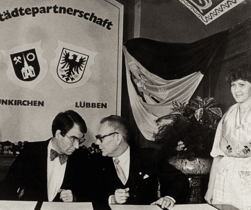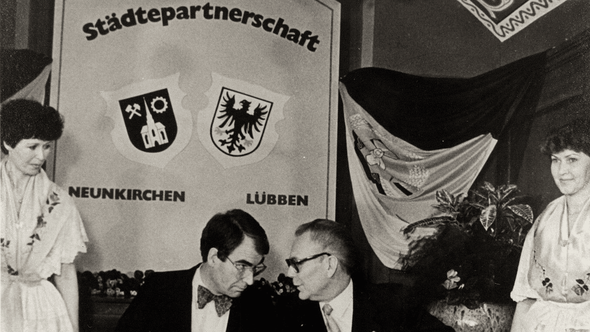 Im November 1986 wird im Lübbener Schloss die zweite innerdeutsche Städtepartnerschaft unterzeichnet. Der Gegenbesuch findet im Dezember 1986 in Neunkirchen statt, der Geburtsstadt von Erich Honecker. 40 Jahre Partnerschaft mit Neunkirchen nehmen wir zum Anlass, um auf diese ungewöhnliche Beziehung zurückzublicken. Auf ihre Anfänge und Schwierigkeiten, auf die Zeit nach der „Wende“ und die kommunale Zusammenarbeit, und auch darauf, ob die „kommunale Außenpolitik“ von einem zivilgesellschaftlichen Austausch abgelöst wurde. Weitere Informationen: Museum Schloss Lübben