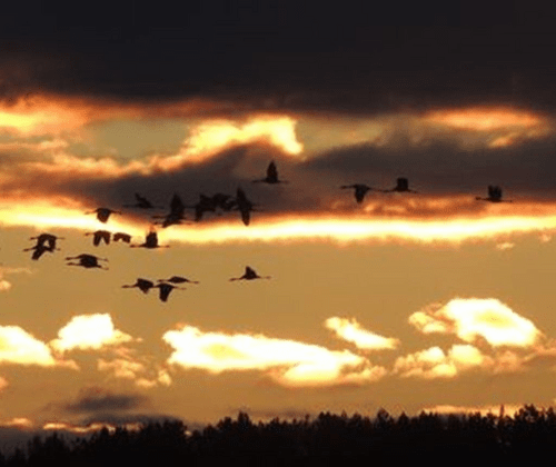 RangerTour:Kraniche im Abendlicht