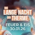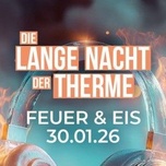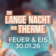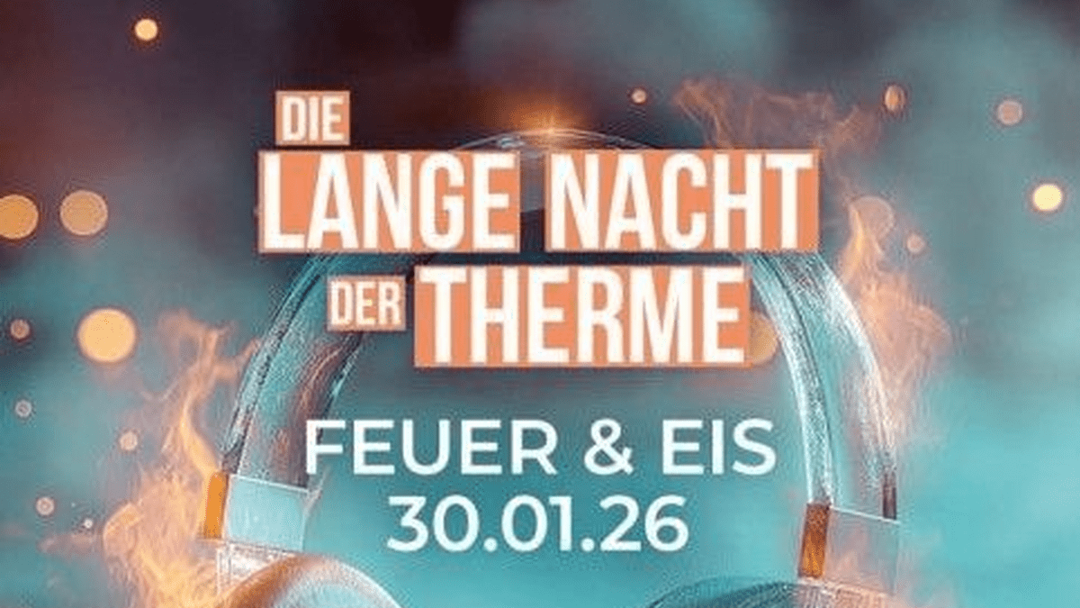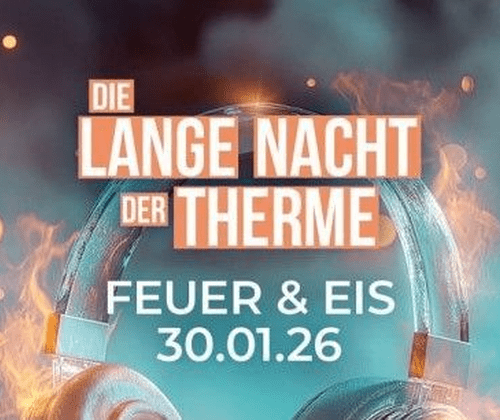Am 30. Januar 2026 ist es wieder so weit! Die beliebte Veranstaltungsreihe „Lange Nacht der Therme“ lädt zum Verweilen in der Therme und Saunalandschaft bis spät in die Nacht ein. Das Motto lautet dieses Mal „Feuer und Eis“. Die Thermalsole-Badelandschaft und der Saunabereich sind an diesem Tag wieder bis 24 Uhr geöffnet und es wird wieder etliche Attraktionen für Euch geben. Der Saunabereich ist am 30.01.2026 ebenfalls bis 0:00 Uhr geöffnet und es gibt einen thematisch angepassten Aufgussplan mit Event-Aufgüssen. Merkt Euch den Termin schon einmal im Kalender vor!
