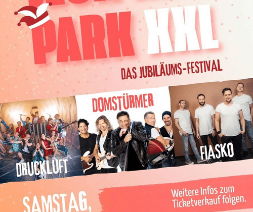 "Jeck im Park XXL" ist ein vielseitiges Konzert-Event, das im Spielplatz Mühlengelände in Warstein stattfindet. Es bietet ein abwechslungsreiches Musikprogramm und verspricht ein unvergessliches Erlebnis für Musikliebhaber:innen.